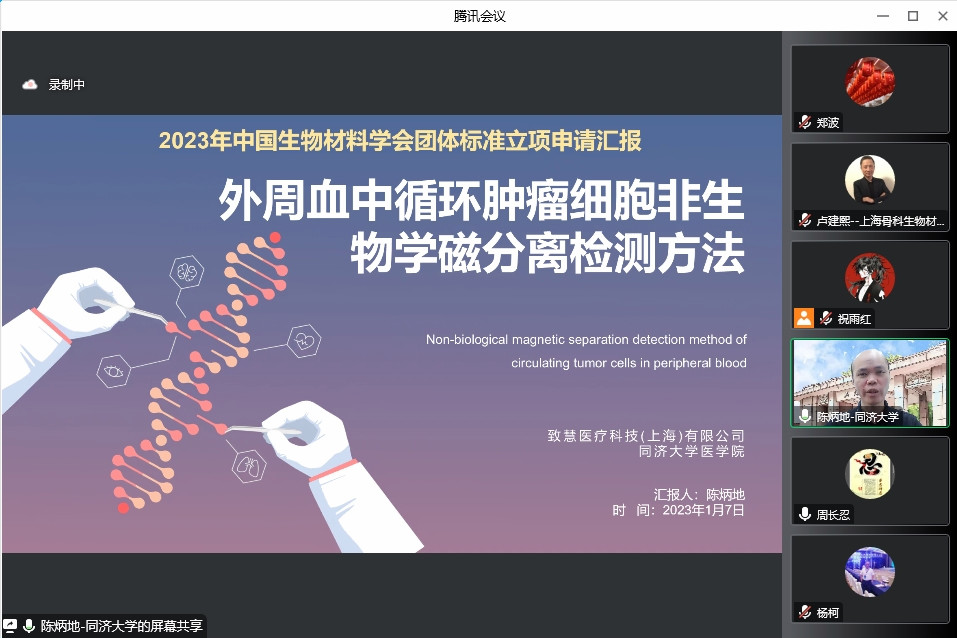 2023年1月7日,中國生物材料學(xué)會第一次團(tuán)體標(biāo)準(zhǔn)立項評審暨技術(shù)評審會議線上召開。中國生物材料學(xué)會標(biāo)準(zhǔn)工作委員會委員與有關(guān)專家、標(biāo)委會秘書處、團(tuán)體標(biāo)準(zhǔn)項目申報單位的有關(guān)人員參加會議。