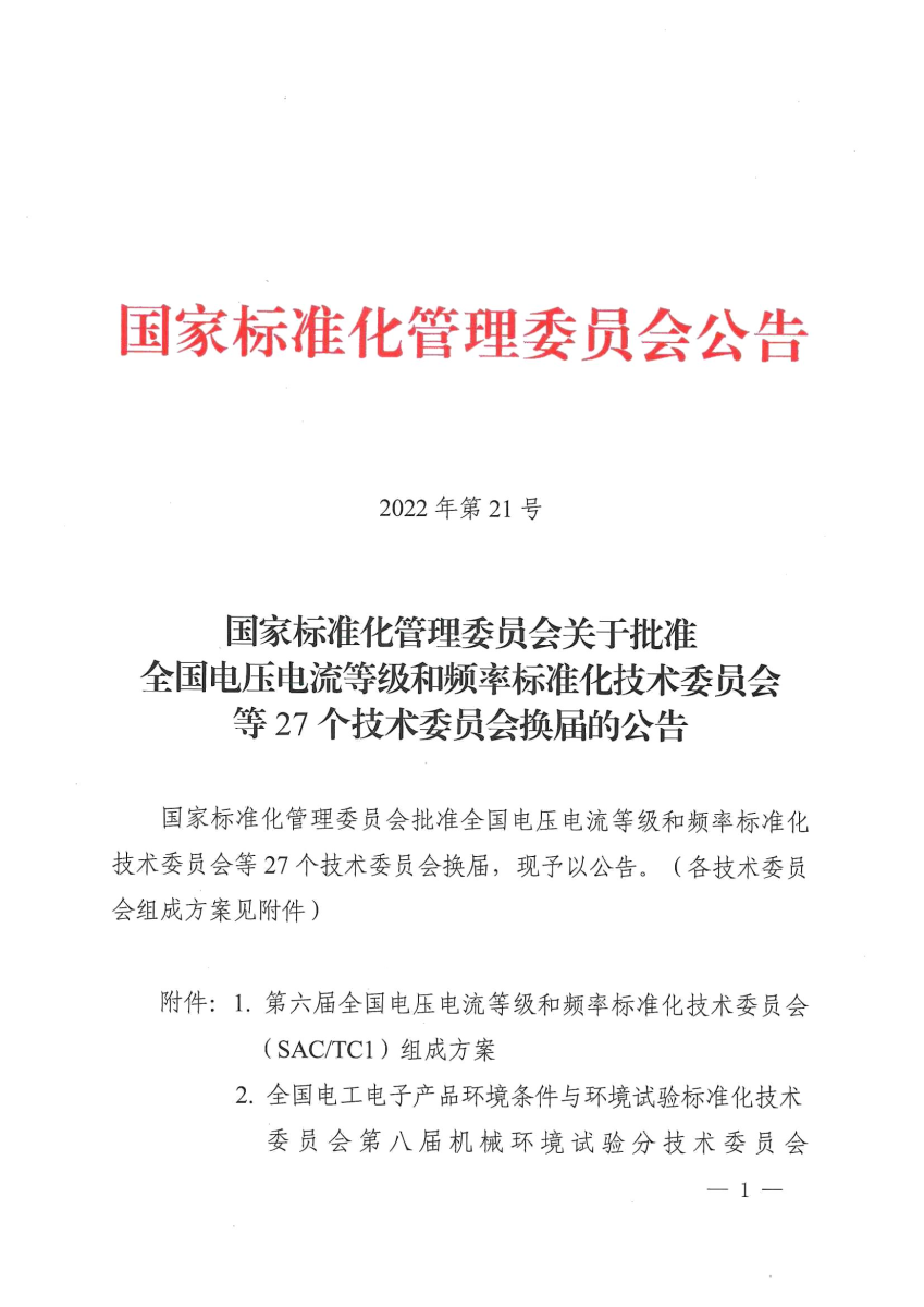 2022年10月28日,國(guó)家標(biāo)準(zhǔn)化管理委員會(huì)批準(zhǔn)全國(guó)電氣安全標(biāo)準(zhǔn)化技術(shù)委員會(huì)換屆并公布組成方案。麥斯達(dá)夫標(biāo)準(zhǔn)化首席運(yùn)營(yíng)官王超當(dāng)選第五屆全國(guó)電氣安全標(biāo)準(zhǔn)化技術(shù)委員會(huì)委員。