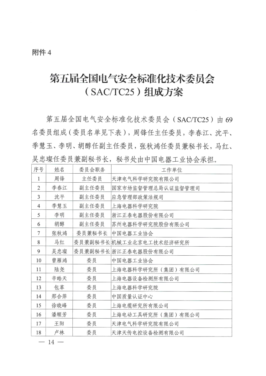 第五屆全國(guó)電氣安全標(biāo)準(zhǔn)化技術(shù)委員會(huì)(SAC/TC25)任期5年,由69名委員組成,秘書處由中國(guó)電器工業(yè)協(xié)會(huì)承擔(dān)。