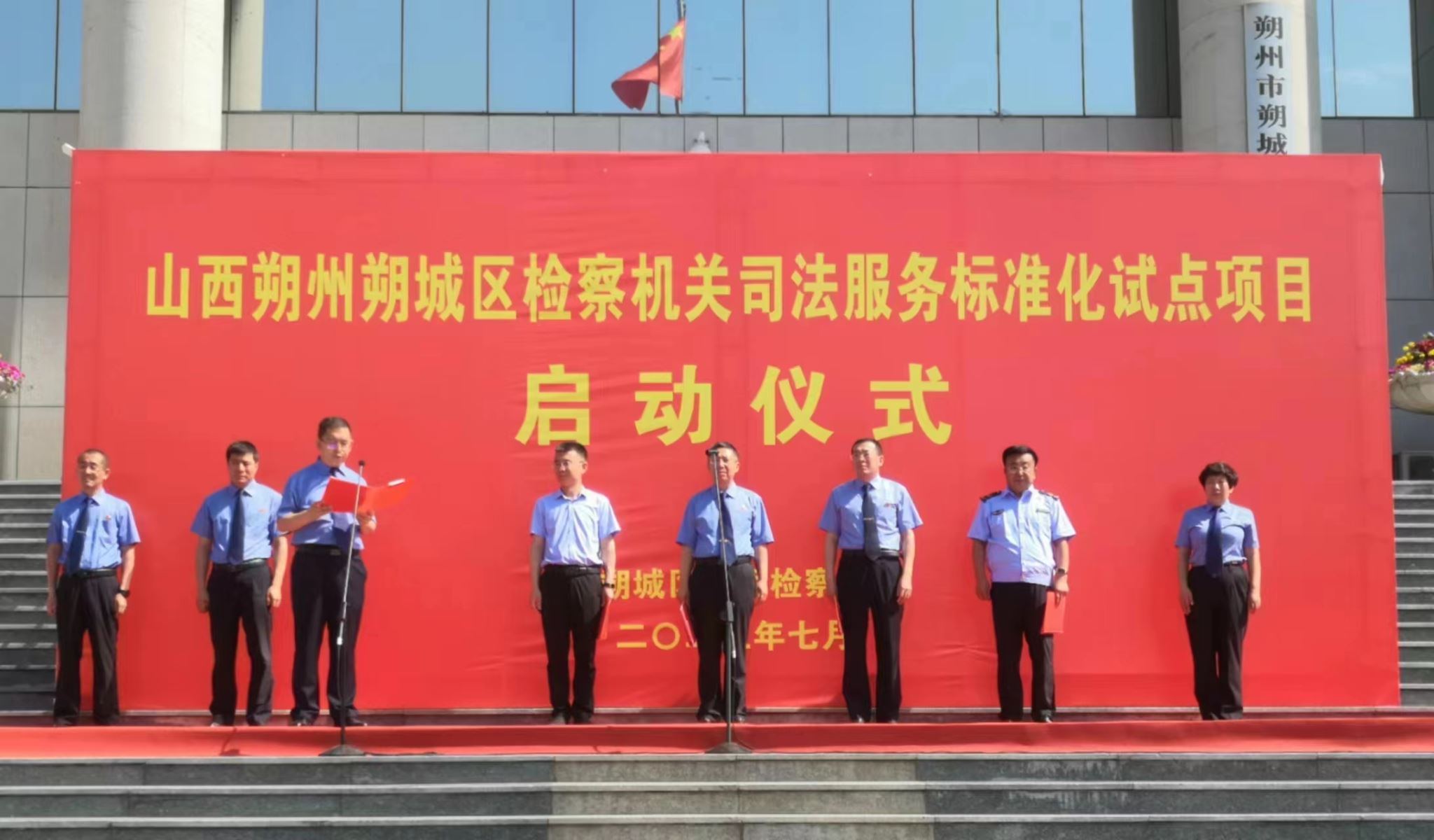 2023年7月11日,山西朔州朔城區(qū)檢察機關(guān)司法服務(wù)標準化試點啟動儀式在山西朔州舉辦。朔州市人民檢察院黨組成員、副檢察長康頊,朔州市朔城區(qū)區(qū)委常委、政法委書記田志國,朔城區(qū)人民檢察院黨組書記、檢察長段仁昱,朔城區(qū)市場監(jiān)督管理局局長杜超出席啟動儀式。會議由朔城區(qū)人民檢察院黨組副書記、常務(wù)副檢察長馬志東主持。
