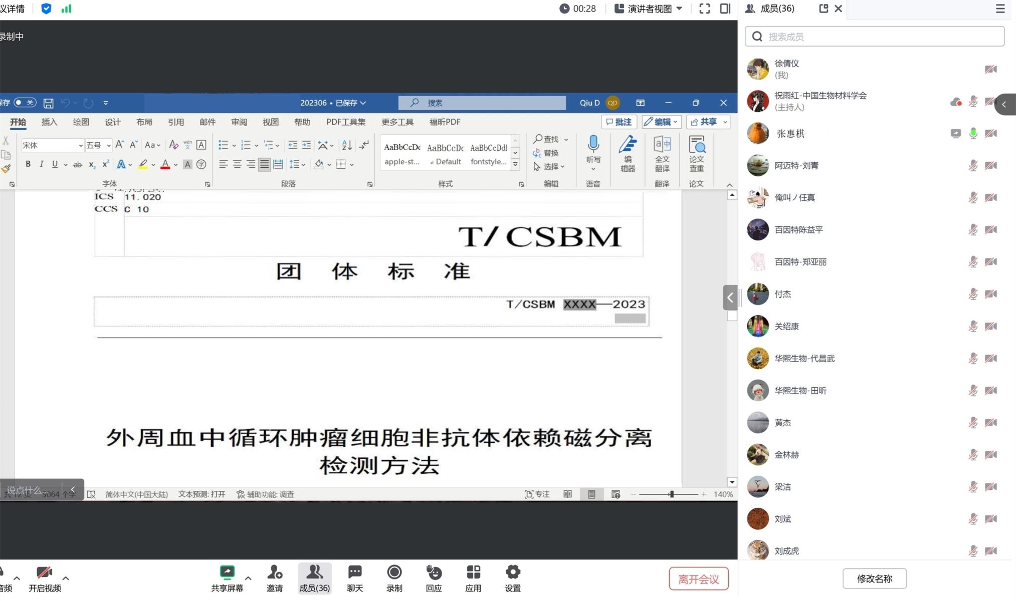 麥斯達(dá)夫標(biāo)準(zhǔn)化作為團(tuán)體標(biāo)準(zhǔn)《外周血中循環(huán)腫瘤細(xì)胞非抗體依賴磁分離檢測(cè)方法》的技術(shù)支撐單位,鄭波、張惠棋、徐倩儀參加會(huì)議。