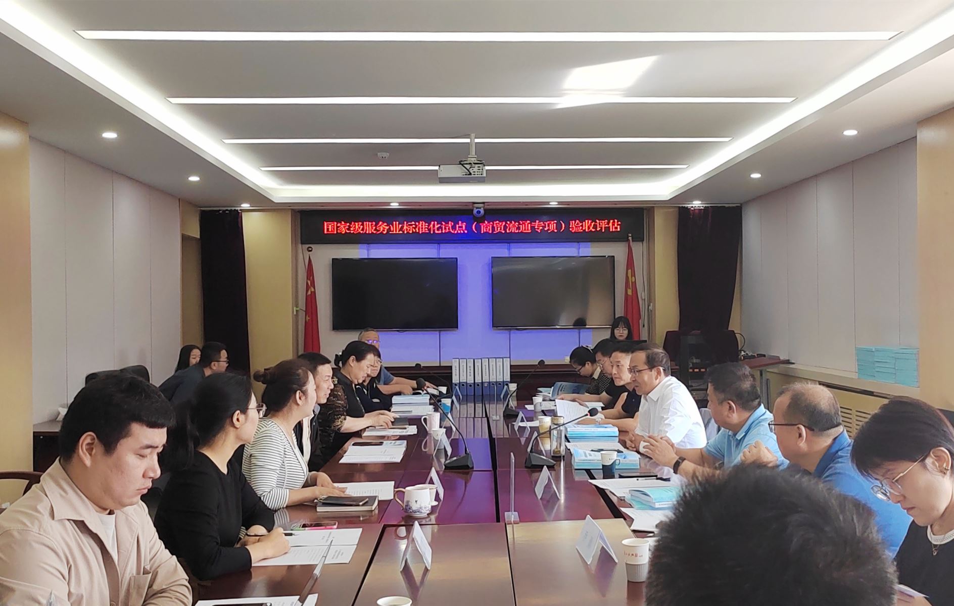 2023年9月21日,太原市承擔(dān)的國家級服務(wù)業(yè)標(biāo)準(zhǔn)化試點(diǎn)(商貿(mào)流通專項(xiàng))終期評估會議在太原市人民政府九層會議室召開。來自山西省商務(wù)廳、山西省外經(jīng)貿(mào)發(fā)展中心、山西省檢驗(yàn)檢測中心、方圓標(biāo)志認(rèn)證技術(shù)研究院的五位專家組成評估專家組。太原市商務(wù)局二級調(diào)研員夏文武、商貿(mào)發(fā)展科科長胡晉徽,市場體系建設(shè)科科長楊靜、四級主任科員劉宇靜,山西穗華物流園有限公司總裁李秀文、山西貢天下電子商務(wù)有限公司總經(jīng)理張磊等參加會議。會議由山西省商務(wù)廳市場體系建設(shè)處處長韓晉成主持。