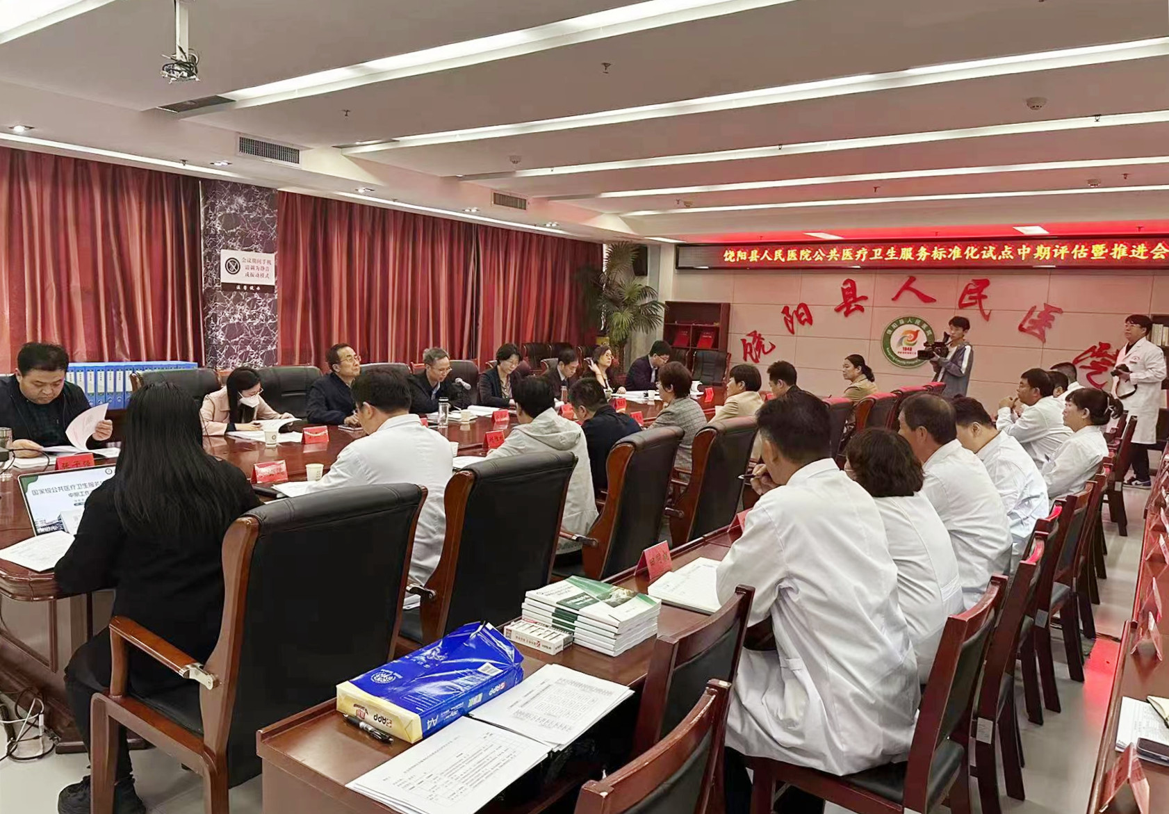 2023年10月30日,河北衡水饒陽縣人民醫(yī)院公共醫(yī)療衛(wèi)生服務(wù)標(biāo)準(zhǔn)化試點(diǎn)中期評估暨推進(jìn)會(huì)召開。河北省市場監(jiān)督管理局標(biāo)準(zhǔn)技術(shù)管理處一級調(diào)研員江學(xué)斌帶隊(duì),由陜西省市場監(jiān)督管理局、中國教育發(fā)展戰(zhàn)略協(xié)會(huì)、河北省衛(wèi)健委、河北省委黨校、河北省教育廳的五位專家組成評估專家組。衡水市衛(wèi)健委副主任李光汝、法監(jiān)科科長張學(xué),饒陽縣人民政府副縣長牛榮霞,衡水市市場監(jiān)督管理局質(zhì)量發(fā)展與標(biāo)準(zhǔn)化科科長馬鋒、副科長張子強(qiáng),縣市場監(jiān)督管理局、縣衛(wèi)健局等領(lǐng)導(dǎo),饒陽縣人民醫(yī)院標(biāo)準(zhǔn)化領(lǐng)導(dǎo)小組、工作小組、各職能科室負(fù)責(zé)人出席會(huì)議。
