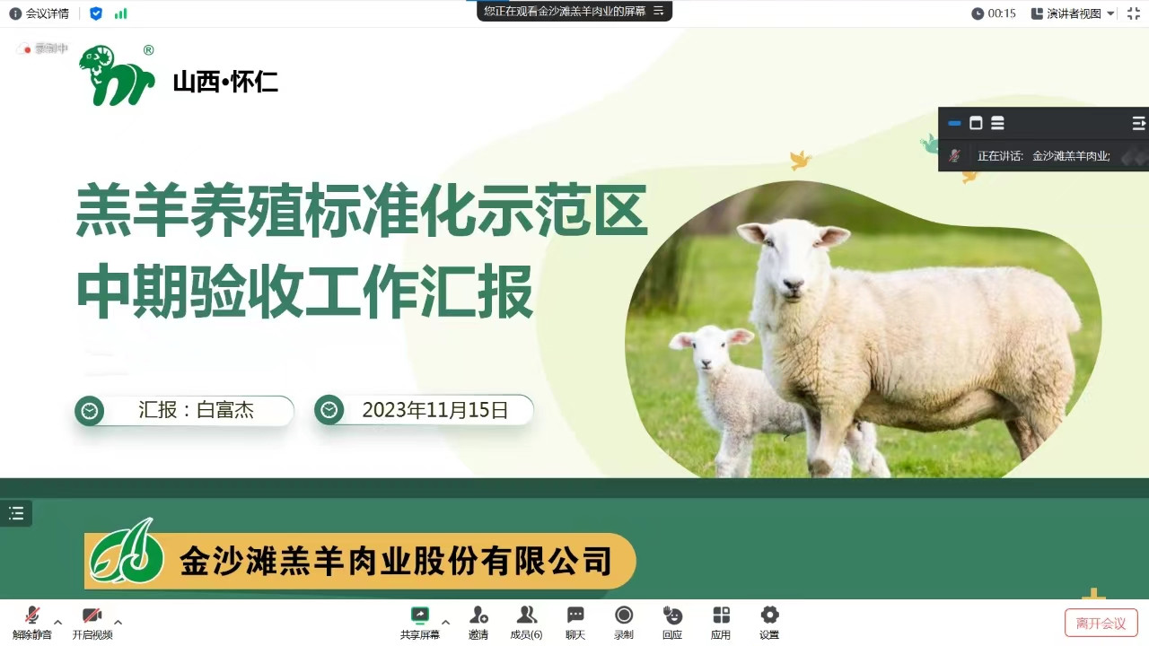 2023年11月15日,羔羊養(yǎng)殖標準化示范區(qū)年度考核評估會以網(wǎng)絡(luò)會議形式召開??己嗽u估小組組長由山西省市場監(jiān)督管理局標準管理處副處長李昆擔(dān)任,考核組成員由農(nóng)業(yè)和標準化領(lǐng)域?qū)<医M成。 懷仁市市場監(jiān)督管理局黨組成員王肇清、標準化股徐巧紅出席會議,懷仁市金沙灘羔羊肉業(yè)股份有限公司副總經(jīng)理白富杰、質(zhì)量部經(jīng)理李旭東、辦公室主任石增蓮參加會議。
