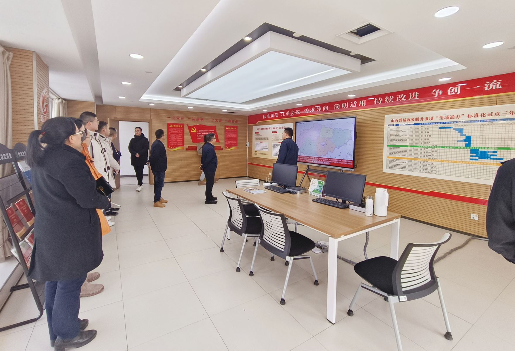 會(huì)前,與會(huì)人員觀摩了設(shè)在市政務(wù)服務(wù)中心1A10的標(biāo)準(zhǔn)化試點(diǎn)辦公室,了解了標(biāo)準(zhǔn)化試點(diǎn)項(xiàng)目全貌。麥斯達(dá)夫標(biāo)準(zhǔn)化作為晉城市政務(wù)服務(wù)事項(xiàng)“全域通辦”標(biāo)準(zhǔn)化試點(diǎn)的技術(shù)支撐單位,申佳雨、陳麗晶、李芯參加會(huì)議。