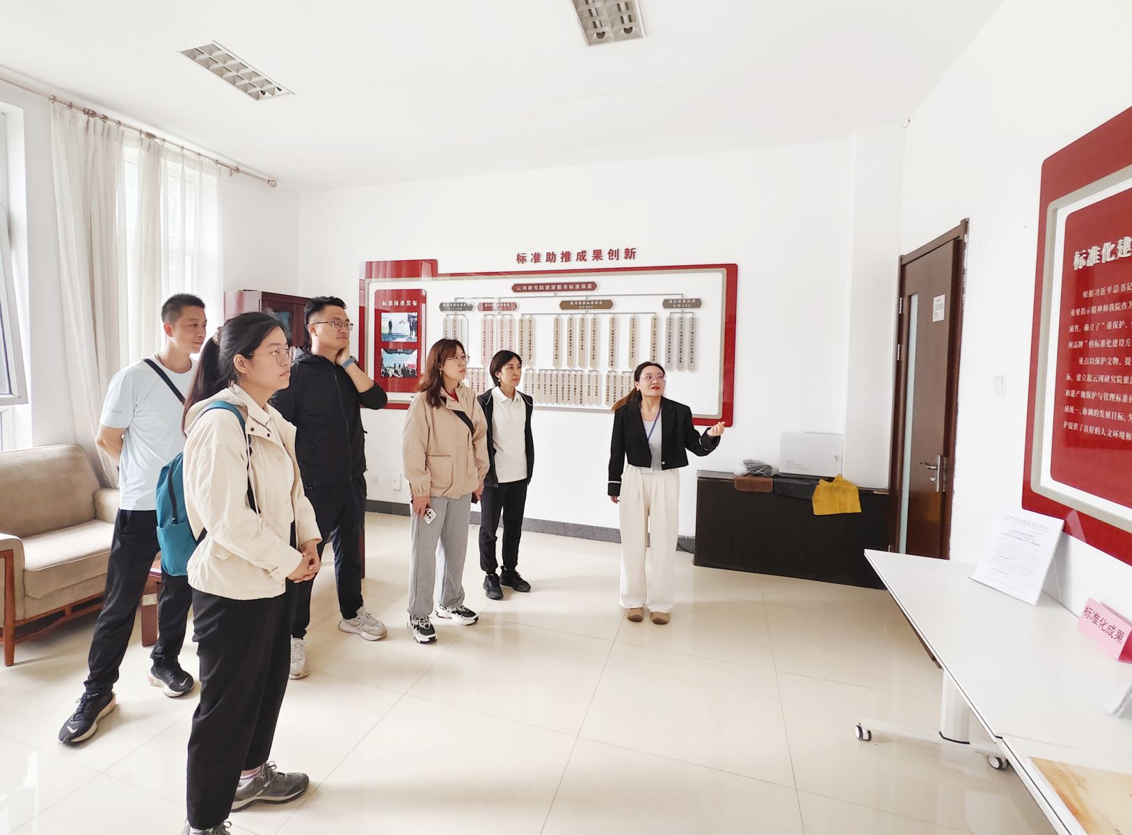 張建沖一行實地調(diào)研了云岡研究院的標(biāo)準(zhǔn)化辦公室、云岡石窟景區(qū)。張曼詳細(xì)介紹了云岡研究院的標(biāo)準(zhǔn)化工作建設(shè)成果,重點就《云岡文旅融合標(biāo)準(zhǔn)化實踐》專著編寫及標(biāo)準(zhǔn)體系建設(shè)情況等方面進(jìn)行了講解。標(biāo)準(zhǔn)化辦公室展示出云岡研究院承擔(dān)國家級旅游服務(wù)標(biāo)準(zhǔn)化試點、山西省第一批省級服務(wù)業(yè)標(biāo)準(zhǔn)化試點期間的組織管理、標(biāo)準(zhǔn)體系、宣貫實施、創(chuàng)新成果等內(nèi)容;云岡石窟是中國規(guī)模最大的石窟群之一,雕刻藝術(shù)精湛、造像內(nèi)容豐富、形象生動感人,景區(qū)各環(huán)節(jié)的服務(wù)處處體現(xiàn)出文旅融合標(biāo)準(zhǔn)化建設(shè)的實施成果。