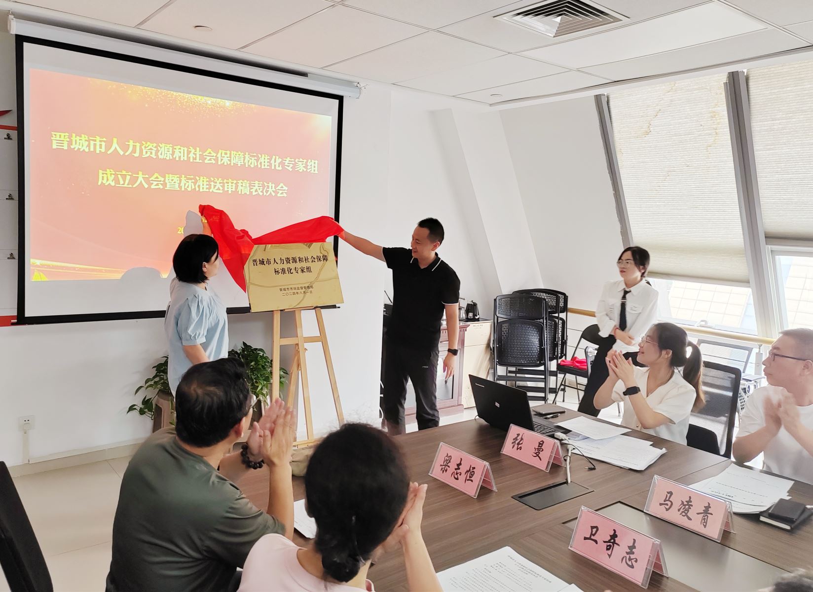 陳建峰、李保葉共同為晉城市人力資源和社會(huì)保障標(biāo)準(zhǔn)化專(zhuān)家組揭牌,標(biāo)志著晉城市人力資源和社會(huì)保障標(biāo)準(zhǔn)化工作正式啟航。
