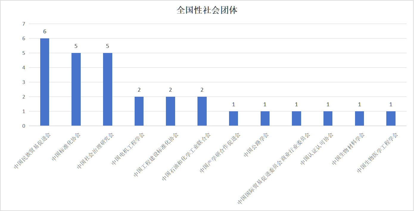 與14家全國性社會團體合作,共計研制28項團體標準。其中,中國民族貿(mào)易促進會6項團體標準,中國標準化協(xié)會、中國社會治理研究會分別5項團體標準,中國工程建設(shè)標準化協(xié)會、中國石油和化學(xué)工業(yè)聯(lián)合會、中國電機工程學(xué)會分別2項團體標準,中國公路學(xué)會、中國產(chǎn)學(xué)研合作促進會、中國國際貿(mào)易促進委員會商業(yè)行業(yè)委員會、中國認證認可協(xié)會、中國生物材料學(xué)會、中國生物醫(yī)學(xué)工程學(xué)會分別1項團體標準。