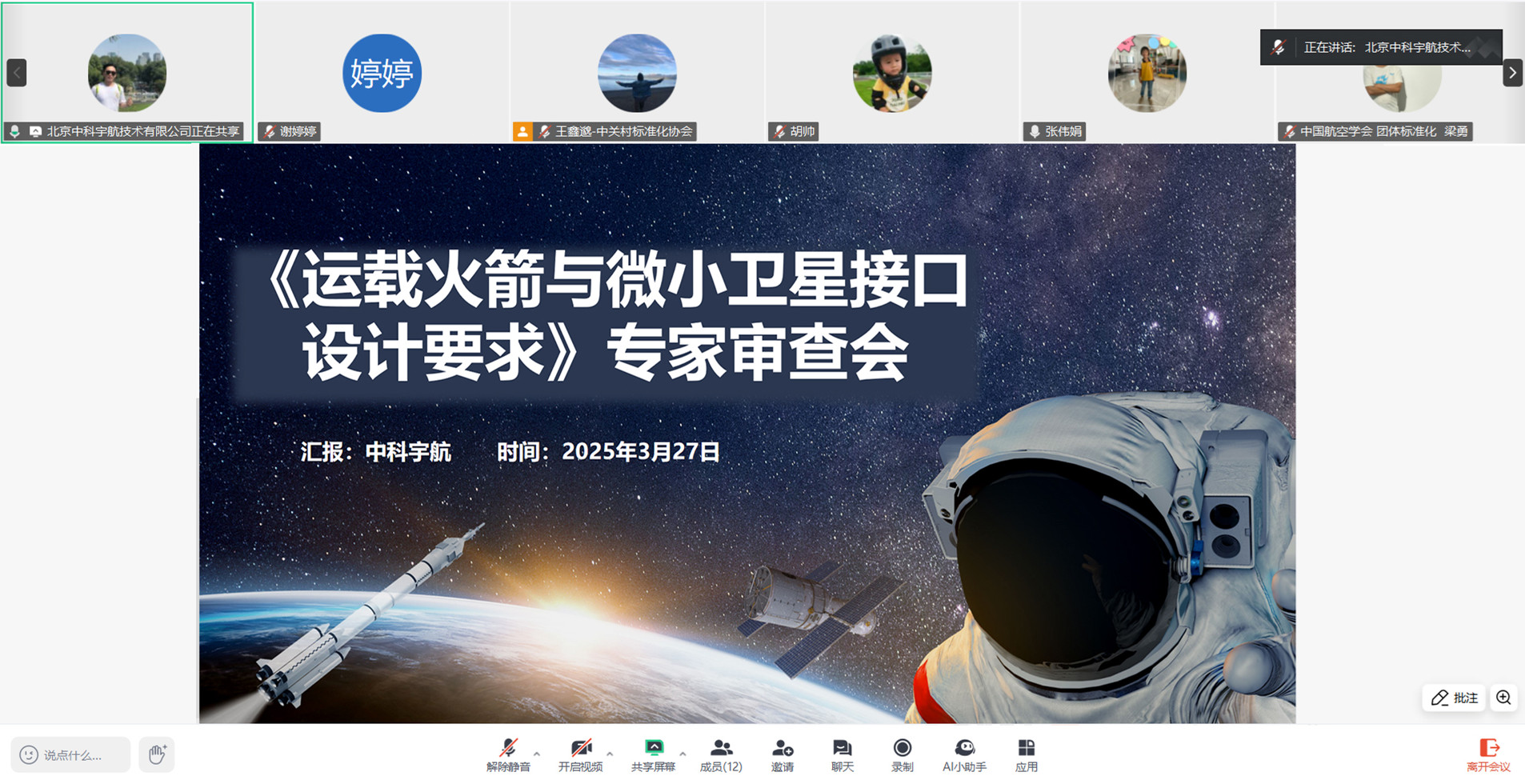2025年3月27日,正值2025中關(guān)村論壇年會開幕之際,中關(guān)村標(biāo)準(zhǔn)化協(xié)會以線上會議形式組織召開《運(yùn)載火箭與微小衛(wèi)星接口設(shè)計(jì)要求》等四項(xiàng)中關(guān)村標(biāo)準(zhǔn)審查會。來自中關(guān)村標(biāo)準(zhǔn)化協(xié)會、中國電子技術(shù)標(biāo)準(zhǔn)化研究院、中科寒武紀(jì)科技股份有限公司、中國航空學(xué)會、聯(lián)想(北京)有限公司的五名專家組成審查會專家組。會議由中關(guān)村標(biāo)準(zhǔn)化協(xié)會認(rèn)定認(rèn)證部主管王鑫邈主持。