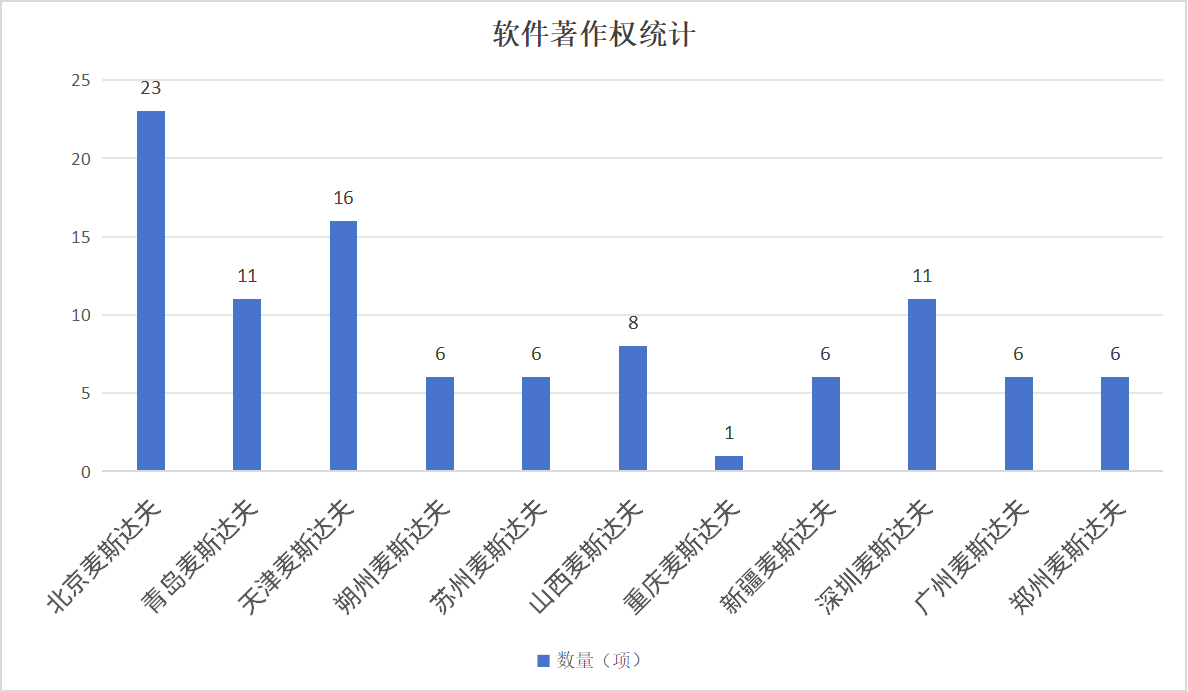 北京麥斯達夫憑借強大的研發(fā)實力,擁有23項軟件著作權(quán),涵蓋多語言異構(gòu)標(biāo)準(zhǔn)數(shù)據(jù)語義對齊系統(tǒng)、標(biāo)準(zhǔn)化成熟度數(shù)字孿生系統(tǒng)等多項技術(shù)領(lǐng)先成果;青島麥斯達夫獲批11項軟件著作權(quán),環(huán)衛(wèi)服務(wù)標(biāo)準(zhǔn)化系統(tǒng)、售后服務(wù)標(biāo)準(zhǔn)化評價系統(tǒng)等均在其列;天津麥斯達夫以16項軟件著作權(quán)展現(xiàn)出在政務(wù)服務(wù)、質(zhì)量監(jiān)測等方面的技術(shù)優(yōu)勢;朔州麥斯達夫擁有6項軟件著作權(quán),涉及碳減排量評估系統(tǒng)、基層檢察服務(wù)標(biāo)準(zhǔn)化系統(tǒng)等;蘇州麥斯達夫的6項軟件著作權(quán)聚焦數(shù)智零售、營養(yǎng)健康、工業(yè)安防等方向;山西麥斯達夫憑借8項軟件著作權(quán),在知識圖譜、特色專業(yè)鎮(zhèn)、區(qū)域公共品牌等領(lǐng)域發(fā)力;重慶麥斯達夫聚焦標(biāo)準(zhǔn)創(chuàng)新型企業(yè)梯度培育深挖數(shù)字化服務(wù);新疆麥斯達夫的6項軟件著作權(quán)全部集中在碳達峰碳中和領(lǐng)域。