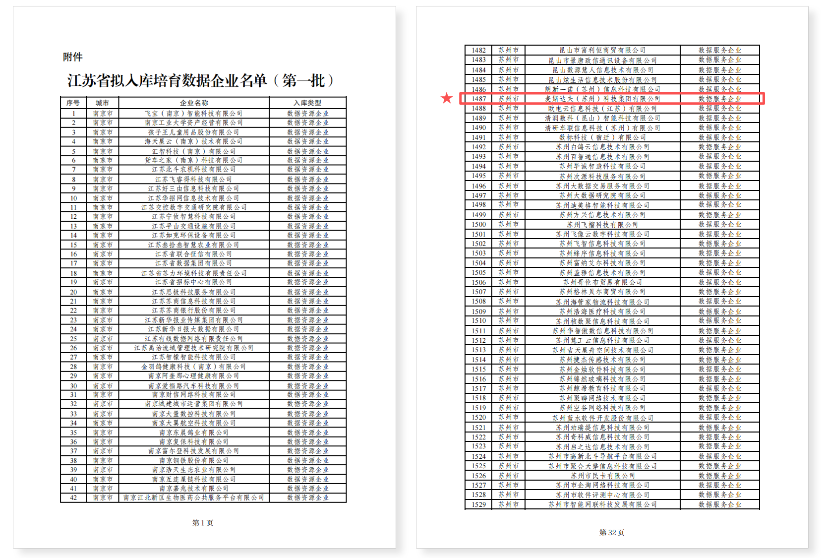 本次入選江蘇省首批數(shù)據(jù)企業(yè)培育庫(kù),標(biāo)志著麥斯達(dá)夫在數(shù)據(jù)創(chuàng)新和服務(wù)領(lǐng)域的實(shí)力獲得省級(jí)認(rèn)可,也為公司后續(xù)在數(shù)據(jù)要素化、資產(chǎn)化方向的發(fā)展奠定了重要基礎(chǔ)。