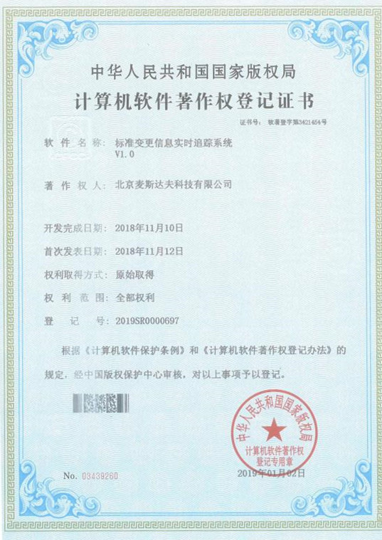 麥斯達(dá)夫標(biāo)準(zhǔn)化事務(wù)所在收到以上兩項(xiàng)軟件著作權(quán)授權(quán)后,已累計(jì)獲得21項(xiàng)軟件著作權(quán)。