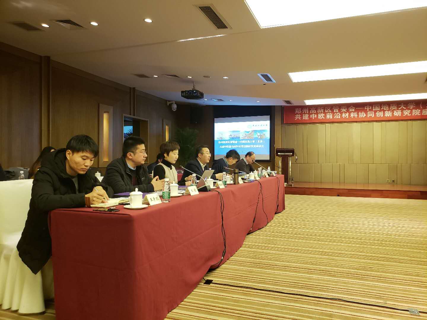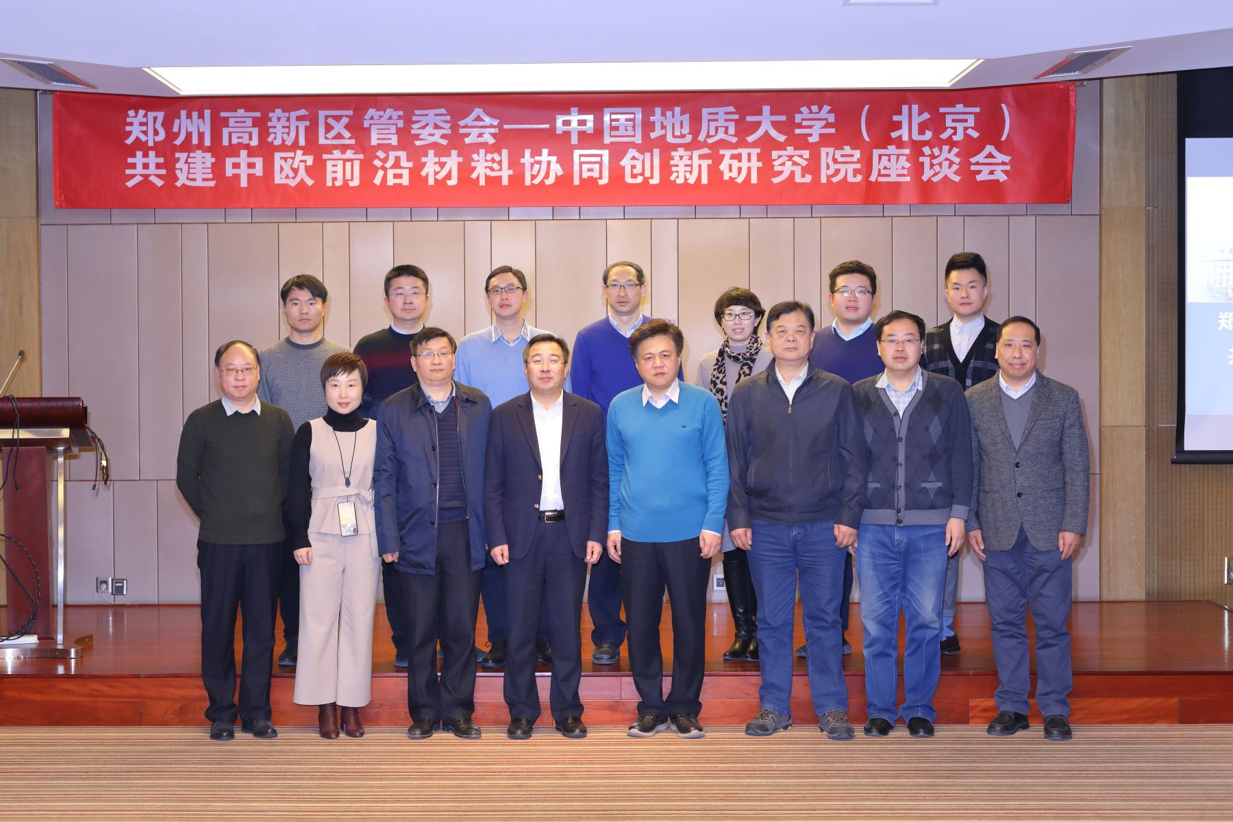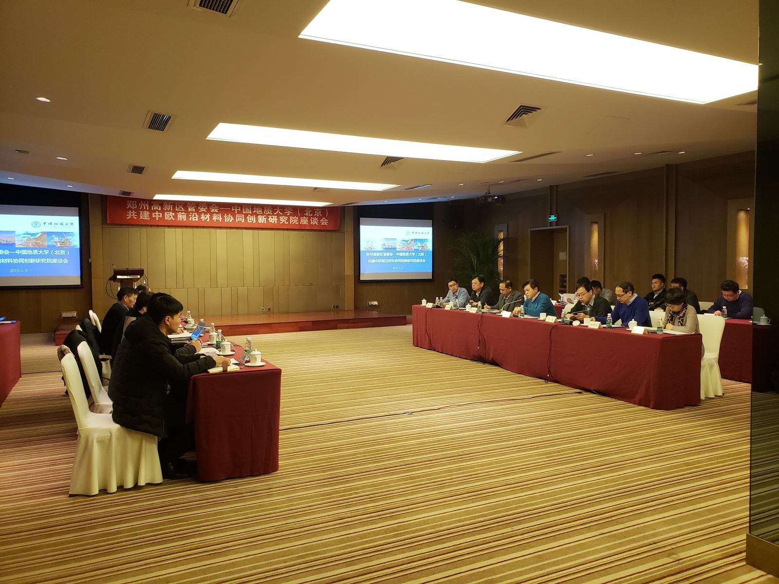2019年1月9日,“鄭州市高新區(qū)管委會—中國地質(zhì)大學(xué)(北京)”共建中歐前沿材料協(xié)同創(chuàng)新研究院座談會在京召開。鄭州高新區(qū)黨工委書記、管委會主任王新亭,改革開放領(lǐng)導(dǎo)小組副組長兼辦公室主任鄭彥松、投資促進(jìn)中心主任張煒煒、黨政辦公室副主任魯華雨、投資促進(jìn)中心副主任王楨等赴京參加會議,中國地質(zhì)大學(xué)(北京)副校長萬力、校長助理兼發(fā)展規(guī)劃處處長于光、科技處處長趙志丹、珠寶學(xué)院黨委副書記周彥、科技處副處長楊曉剛,工程技術(shù)學(xué)院副院長岳文、王成彪教授等出席會議,麥斯達(dá)夫首席執(zhí)行官鄭波、高級副總裁李鵬、鄭州公司總經(jīng)理李寧等參加活動。