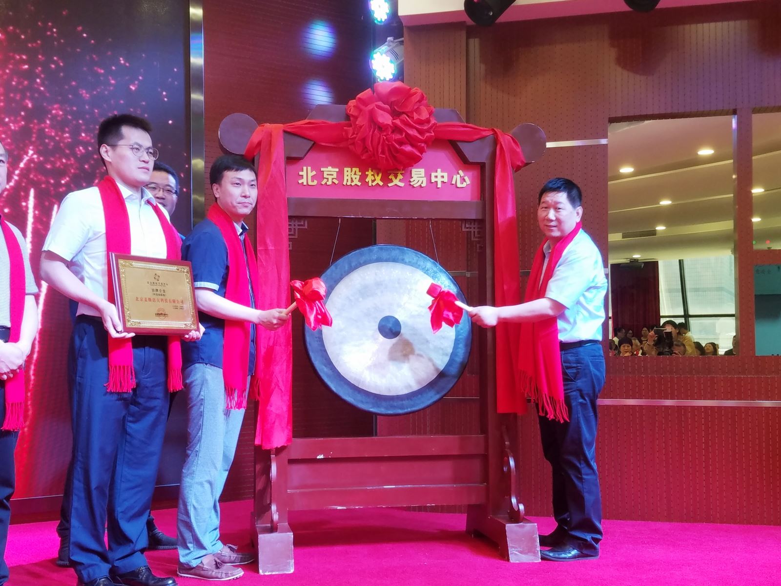 海淀區(qū)投資促進局副局長王春生向麥斯達夫聯(lián)合創(chuàng)始人王振凱授予科創(chuàng)板牌匾,麥斯達夫聯(lián)合創(chuàng)始人王超代表公司敲鑼。麥斯達夫在京全體員工參加授牌、敲鑼儀式。