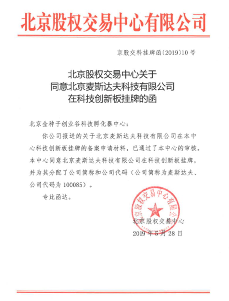 2019年5月28日,北京股權(quán)交易中心科創(chuàng)板掛牌儀式在海淀創(chuàng)業(yè)園中關(guān)村創(chuàng)業(yè)大廈舉行。海淀區(qū)委常委、副區(qū)長李俊杰,中關(guān)村股權(quán)交易服務(wù)集團副總經(jīng)理侯博,上地街道黨工委書記畢淑琴,北京股權(quán)交易中心總經(jīng)理助理楊宗威等出席活動。