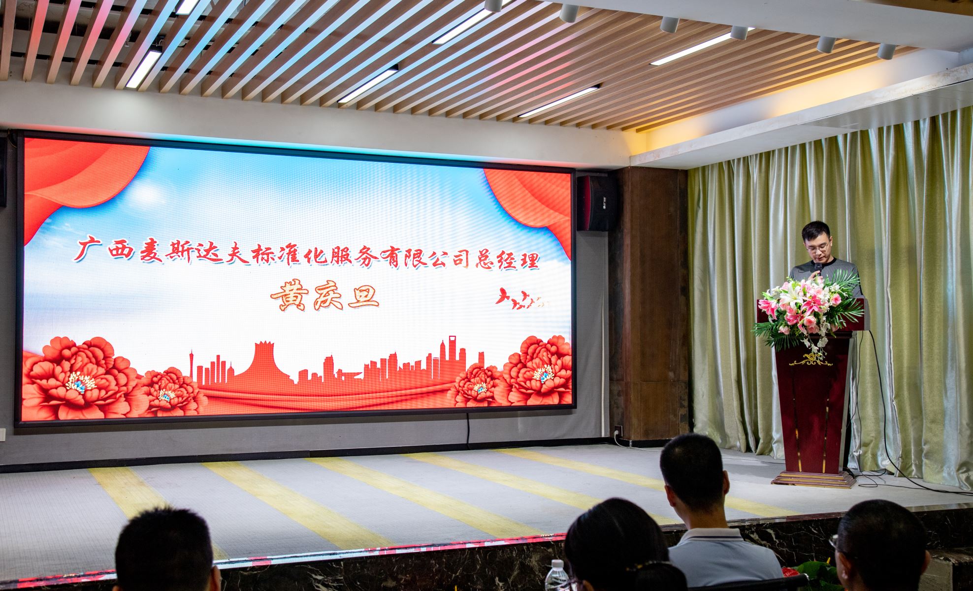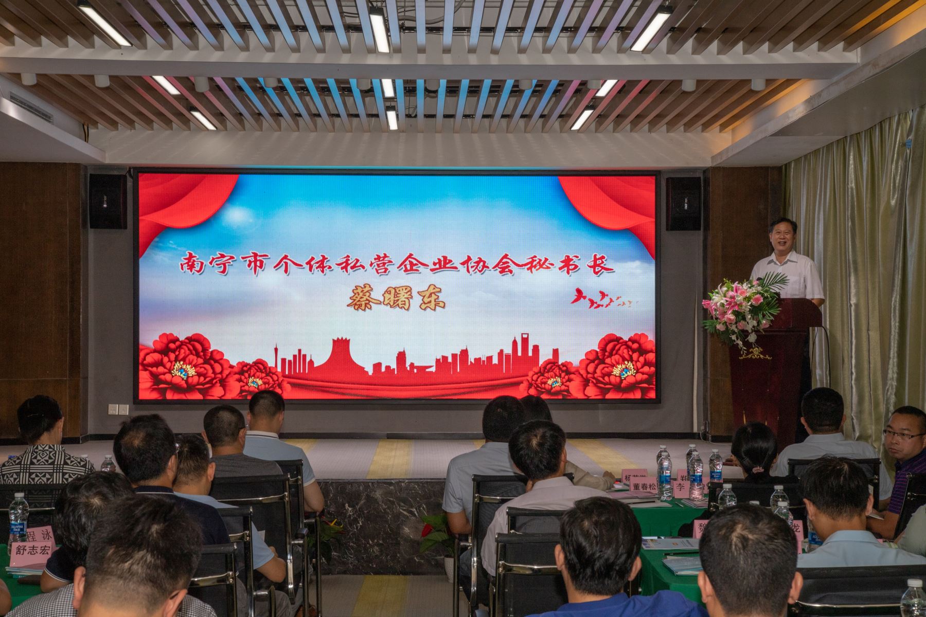 會議開幕環(huán)節(jié),南寧市個體私營企業(yè)協(xié)會秘書長蔡曙東、廣西麥斯達夫標(biāo)準(zhǔn)化服務(wù)有限公司總經(jīng)理黃慶旦分別致歡迎辭。