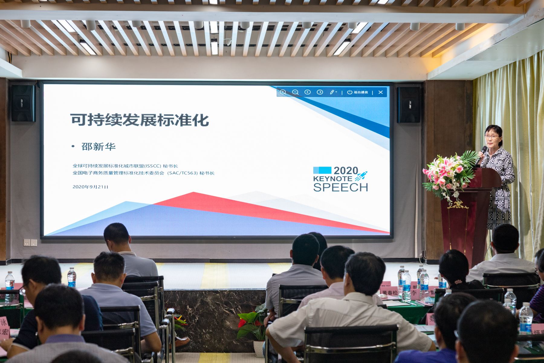 全國電子商務(wù)質(zhì)量管理標(biāo)準(zhǔn)化技術(shù)委員會秘書長、全球可持續(xù)發(fā)展標(biāo)準(zhǔn)化城市聯(lián)盟秘書長邵新華作題為《可持續(xù)發(fā)展標(biāo)準(zhǔn)化》的主旨報告。