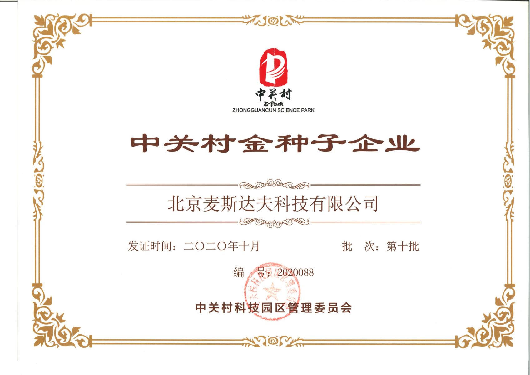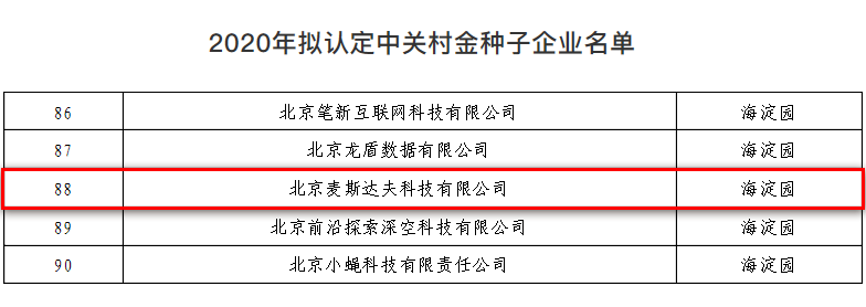 麥斯達(dá)夫獲批“2020年中關(guān)村金種子企業(yè)”