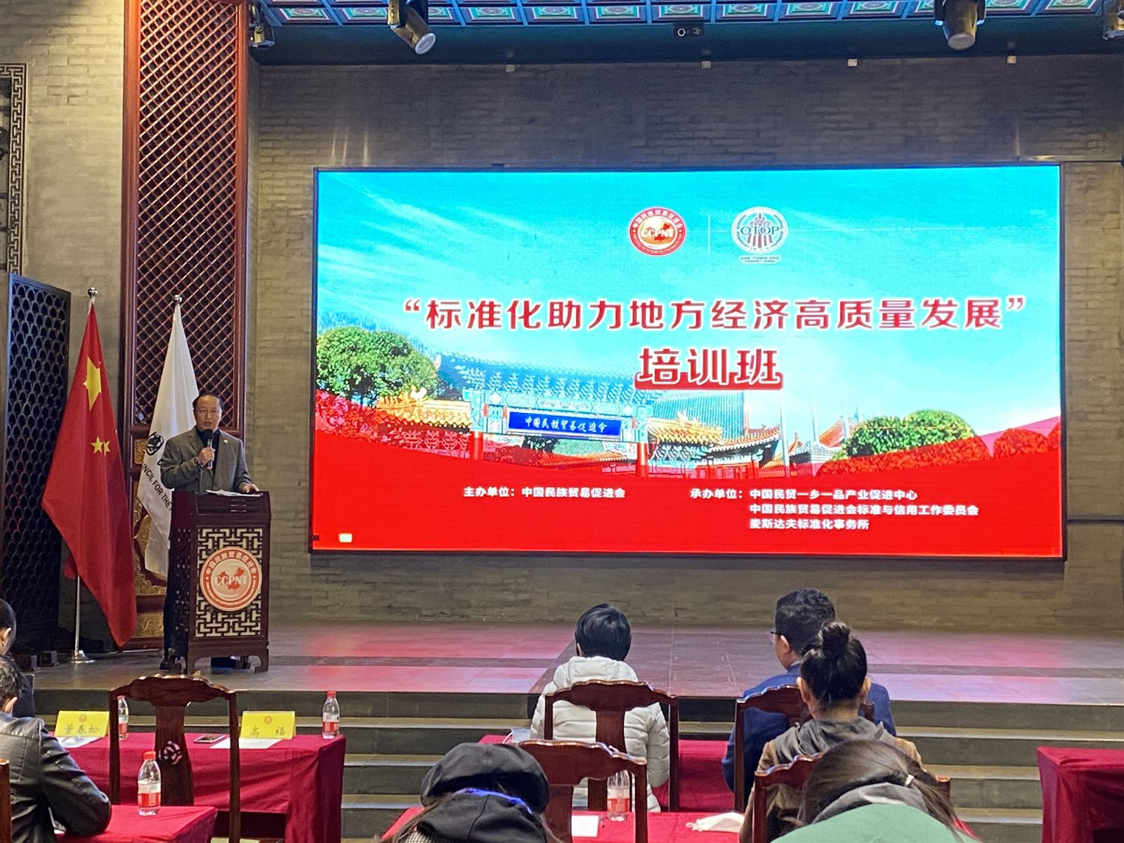 2020年11月5日,由中國(guó)民族貿(mào)易促進(jìn)會(huì)主辦,中國(guó)民貿(mào)一鄉(xiāng)一品產(chǎn)業(yè)促進(jìn)中心、中國(guó)民族貿(mào)易促進(jìn)會(huì)標(biāo)準(zhǔn)與信用工作委員會(huì)、麥斯達(dá)夫標(biāo)準(zhǔn)化事務(wù)所承辦的“標(biāo)準(zhǔn)化助力地方經(jīng)濟(jì)高質(zhì)量發(fā)展”培訓(xùn)班在中國(guó)民族貿(mào)易促進(jìn)會(huì)陽(yáng)光禮堂舉辦。來(lái)自河北、內(nèi)蒙、黑龍江、海南等全國(guó)多個(gè)?。ㄊ校┑臉?biāo)準(zhǔn)化從業(yè)者及企業(yè)代表三十余人參加此次培訓(xùn)。培訓(xùn)由中國(guó)民族貿(mào)易促進(jìn)會(huì)標(biāo)準(zhǔn)與信用工作委員會(huì)負(fù)責(zé)人董春松主持。