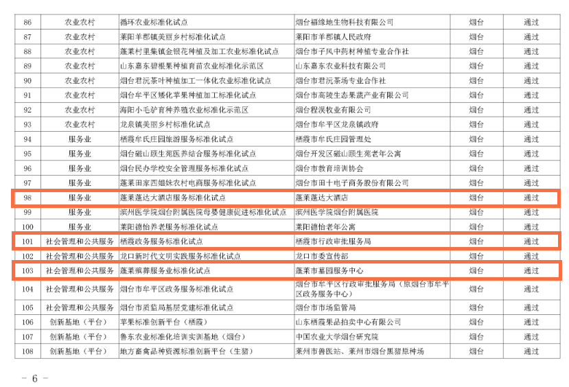 2020年11月4日,山東省市場監(jiān)督管理局公布2020年省級標準化試點項目監(jiān)督檢查結(jié)果的通知。麥斯達夫承擔(dān)的“山東省垃圾處理技術(shù)標準化創(chuàng)新基地”“蓬萊蓬達大酒店服務(wù)標準化試點”“棲霞政務(wù)服務(wù)標準化試點”“蓬萊殯葬服務(wù)業(yè)標準化試點”“黃河三角洲(濱州)北海大飯店服務(wù)標準化試點”“沂水縣田園綜合體建設(shè)標準化試點”六個項目全部順利通過驗收。