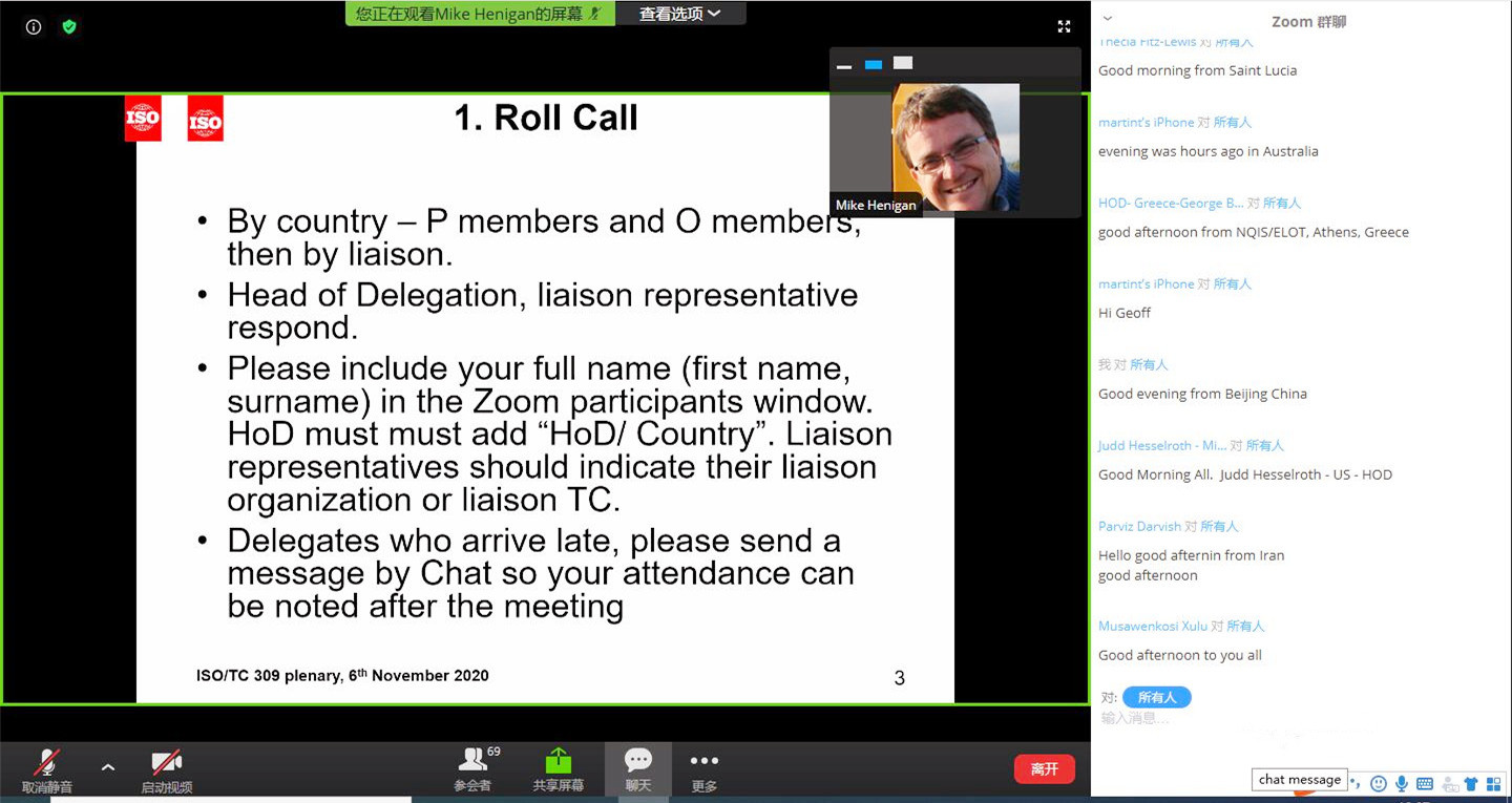 2020年11月2日-6日,國際標準化組織機構(gòu)治理技術(shù)委員會(ISO/TC309)第六次全會以網(wǎng)絡(luò)形式召開。來自英國、美國、中國、法國、澳大利亞、德國、特立尼達和多巴哥、馬來西亞、印度、奧地利等國家的八十余名專家在線參加會議。本次全會因受新冠疫情影響通過網(wǎng)絡(luò)形式召開,之前的五次全會分別在英國倫敦、加拿大魁北克、中國深圳、澳大利亞悉尼、印度新德里舉行。麥斯達夫標準化事務(wù)所首席執(zhí)行官鄭波作為ISO/TC309注冊專家參加本次全會。