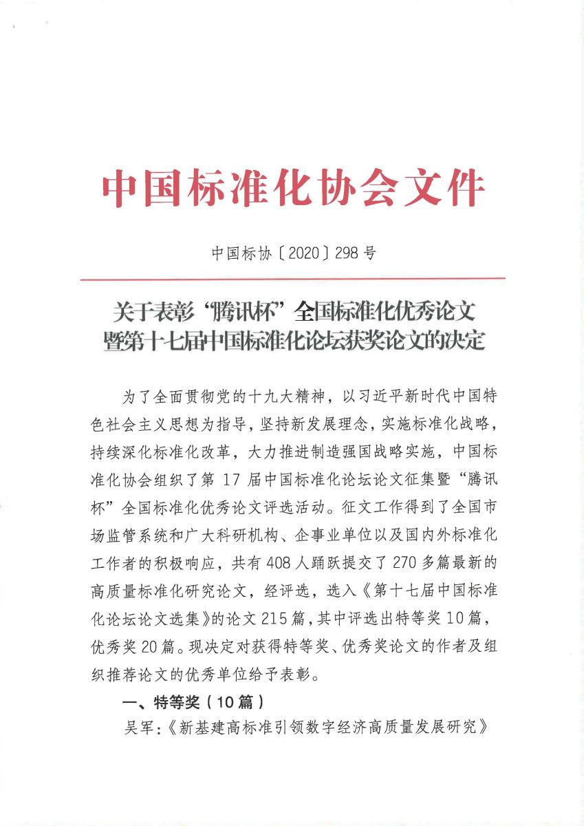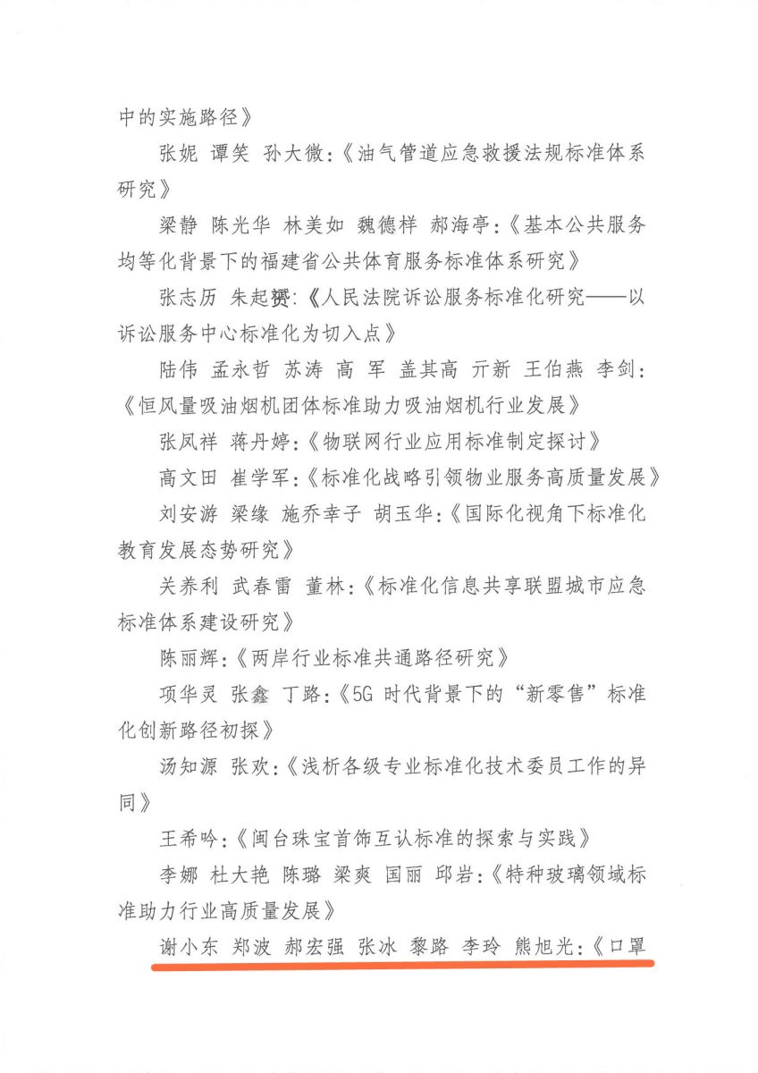 我所論文《口罩生產(chǎn)企業(yè)產(chǎn)品標(biāo)準(zhǔn)技術(shù)指標(biāo)比對(duì)分析》獲第十七屆中國(guó)標(biāo)準(zhǔn)化論壇優(yōu)秀獎(jiǎng)