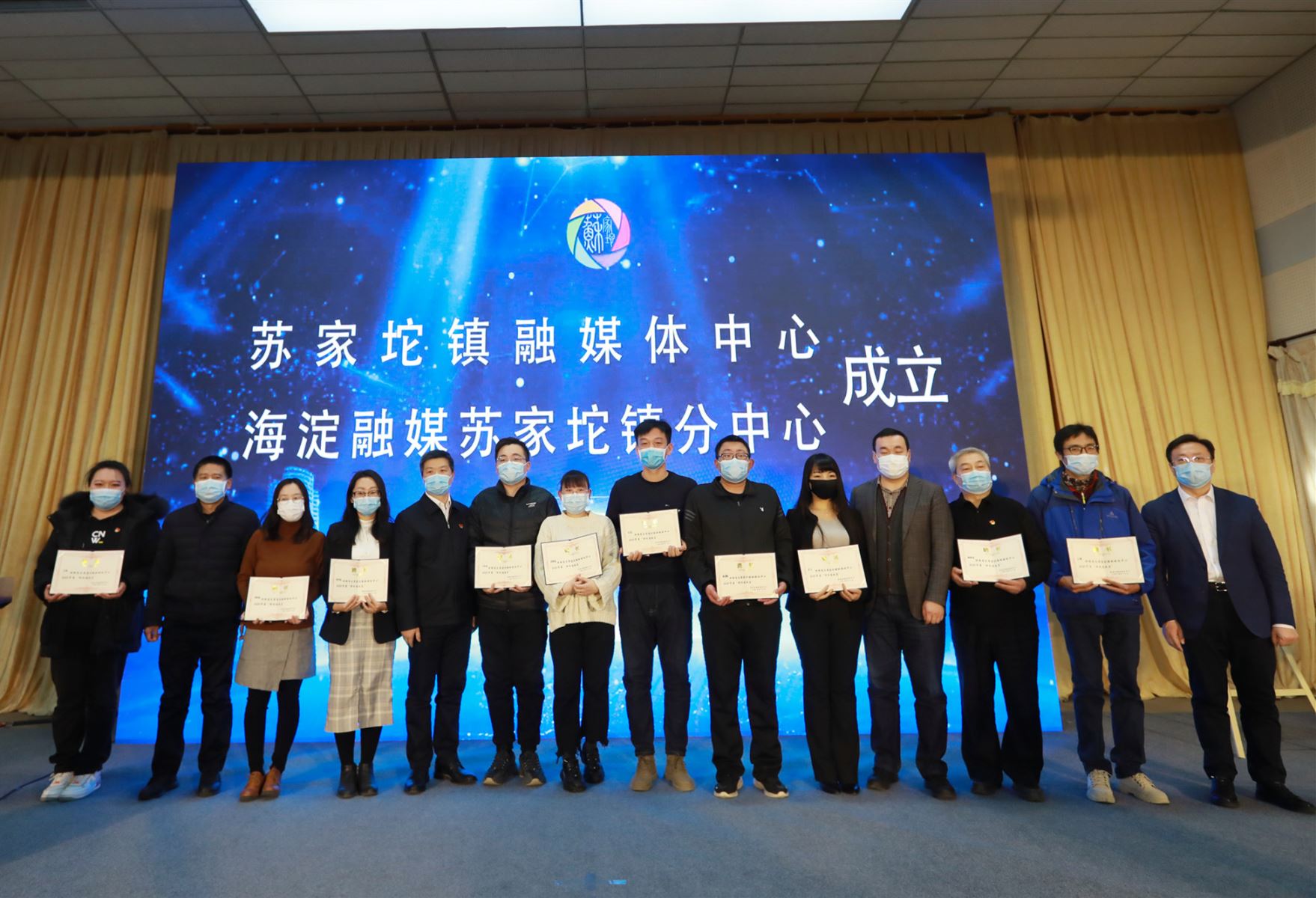 會(huì)議播放了海淀區(qū)融媒體中心蘇家坨分中心宣傳視頻后,佟志偉和張文濤一同為海淀區(qū)融媒體中心蘇家坨分中心揭牌。