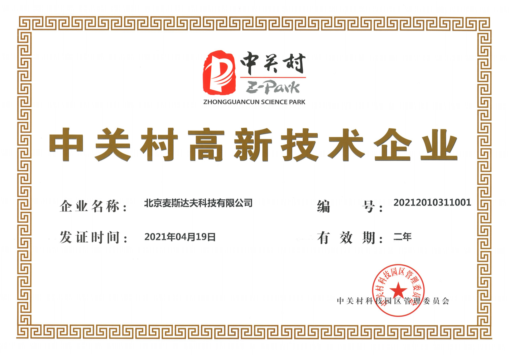 2021年4月19日,北京麥斯達(dá)夫科技有限公司通過“中關(guān)村高新技術(shù)企業(yè)”復(fù)核,再次獲得資質(zhì)認(rèn)定。