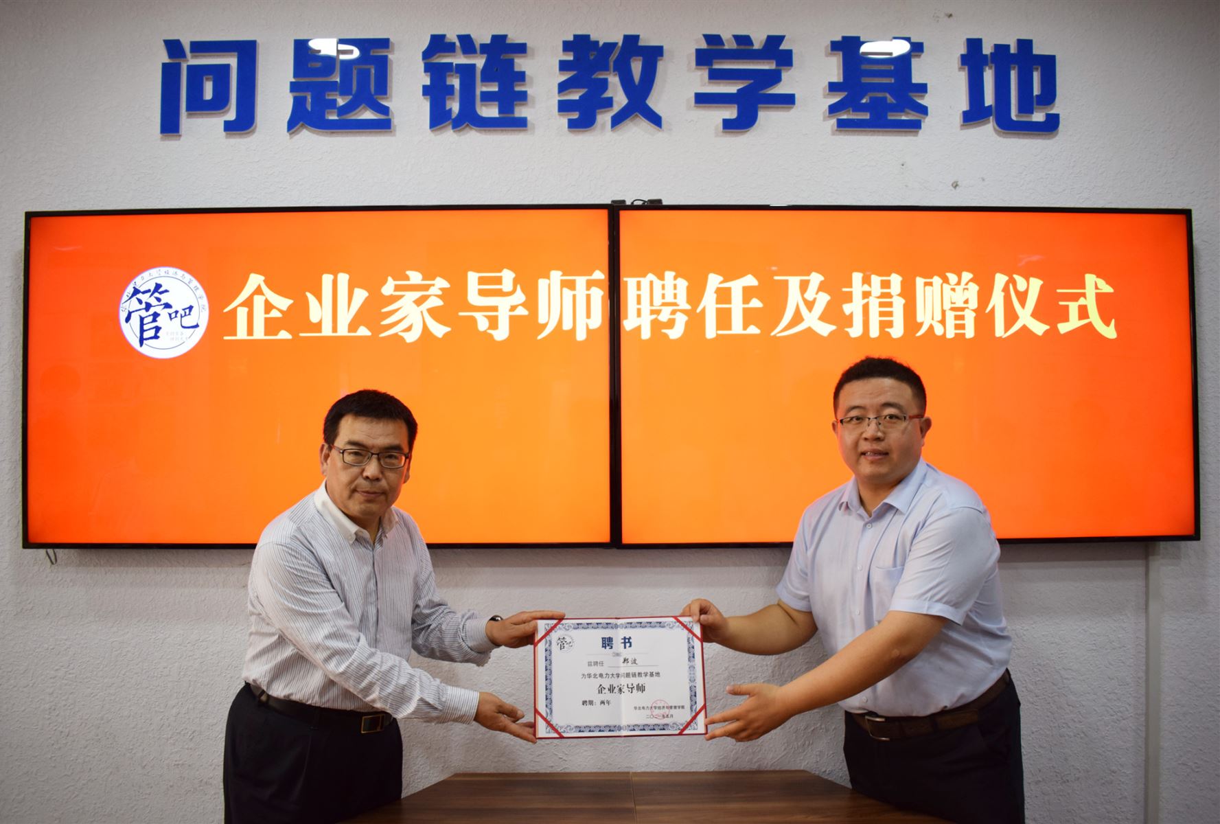 2021年5月22日,華北電力大學(xué)問題鏈教學(xué)基地企業(yè)家導(dǎo)師聘任及捐贈儀式在經(jīng)濟(jì)與管理學(xué)院管吧舉行。校友與教育基金工作辦公室副主任劉艷,經(jīng)濟(jì)與管理學(xué)院院長、問題鏈教學(xué)基地育人團(tuán)隊(duì)帶頭人李彥斌,經(jīng)濟(jì)與管理學(xué)院副院長李泓澤出席活動。麥斯達(dá)夫標(biāo)準(zhǔn)化創(chuàng)始人&CEO、學(xué)院2017屆MBA校友鄭波,航天極創(chuàng)物聯(lián)網(wǎng)研究院(南京)有限公司事業(yè)部總經(jīng)理、學(xué)院2011屆電子商務(wù)專業(yè)校友楊琦受邀參加儀式。經(jīng)管院本科及研究生二十余人參加儀式。儀式由經(jīng)管院副處級組織員張燦飛主持。