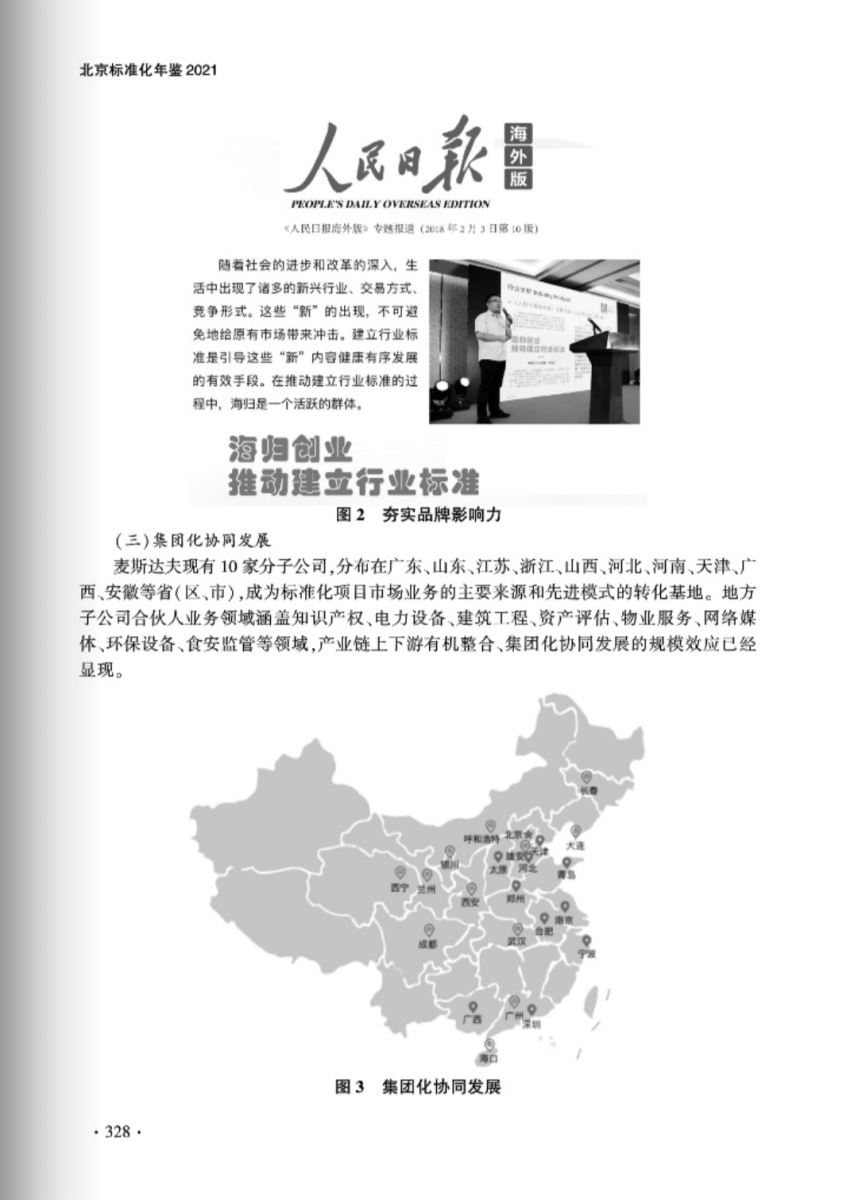 近日,由首都標準化委員會辦公室組織編纂的《北京標準化年鑒2021》正式發(fā)布。此書自2011年至今已連續(xù)出版9冊,是一部反映北京市標準化工作的綜合性資料工具書和史料文獻。麥斯達夫標準化服務(wù)業(yè)試點建設(shè)經(jīng)驗“聚力科技創(chuàng)新 以市場化引領(lǐng)標準化服務(wù)業(yè)高質(zhì)量發(fā)展”成功入選。