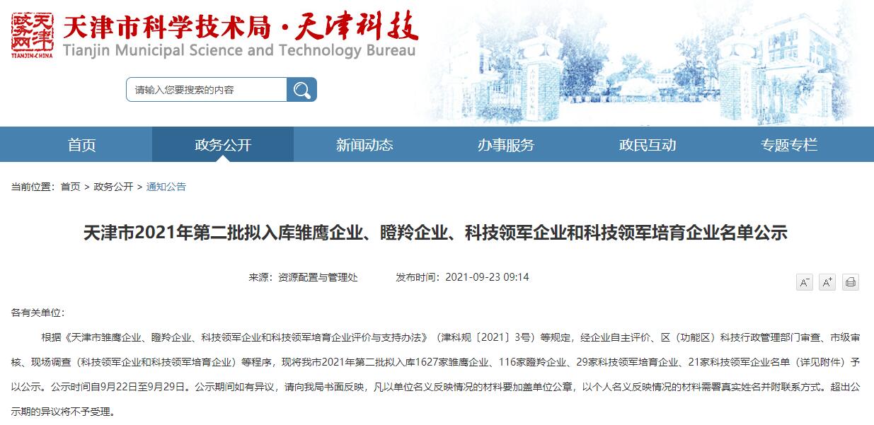 根據(jù)《天津市雛鷹企業(yè)、瞪羚企業(yè)、科技領(lǐng)軍企業(yè)和科技領(lǐng)軍培育企業(yè)評(píng)價(jià)與支持辦法》(津科規(guī)〔2021〕3號(hào))等規(guī)定,經(jīng)企業(yè)自主評(píng)價(jià)、區(qū)(功能區(qū))科技行政管理部門(mén)審查、市級(jí)審核、現(xiàn)場(chǎng)調(diào)查(科技領(lǐng)軍企業(yè)和科技領(lǐng)軍培育企業(yè))等程序,天津市2021年第二批將入庫(kù)1627家雛鷹企業(yè)、116家瞪羚企業(yè)、29家科技領(lǐng)軍培育企業(yè)、21家科技領(lǐng)軍企業(yè)。其中,在天津市2021年第二批入庫(kù)雛鷹企業(yè)名單中,天津麥斯達(dá)夫標(biāo)準(zhǔn)化服務(wù)有限公司榮耀位列其中。
