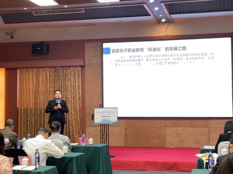 北京御道十方科技集團(tuán)有限公司的執(zhí)行董事董山峰作《多層次的國際標(biāo)準(zhǔn)人才培養(yǎng)》的主題演講。