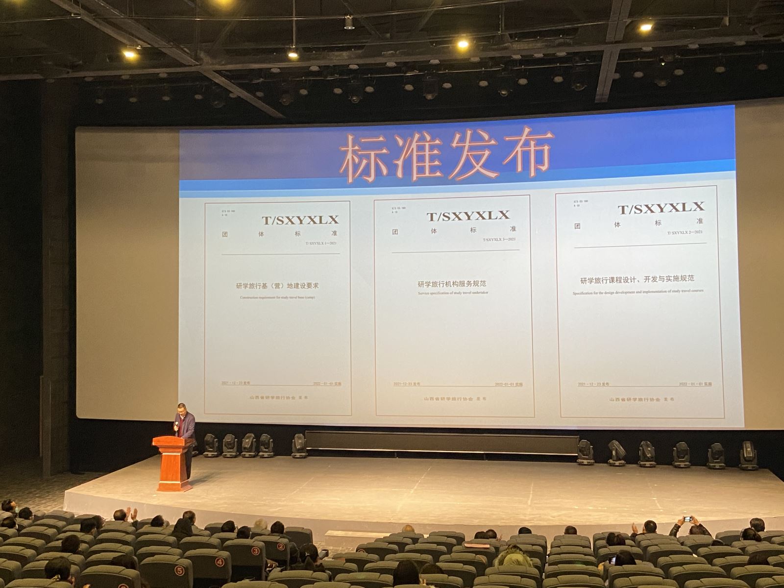 2021年12月23日,在山西省首屆“晉研行”研學(xué)旅行高峰論壇上,山西省研學(xué)旅行協(xié)會(huì)會(huì)長(zhǎng)王定安正式宣布由麥斯達(dá)夫主導(dǎo)編制的《研學(xué)旅行基(營(yíng))地建設(shè)規(guī)范》(T/SXYXLX 001-2021)、《研學(xué)旅行課程設(shè)計(jì)、開發(fā)與實(shí)施規(guī)范》(T/SXYXLX 002-2021)、《研學(xué)旅行機(jī)構(gòu)服務(wù)規(guī)范》(T/SXYXLX 003-2021)三項(xiàng)團(tuán)體標(biāo)準(zhǔn)正式發(fā)布。