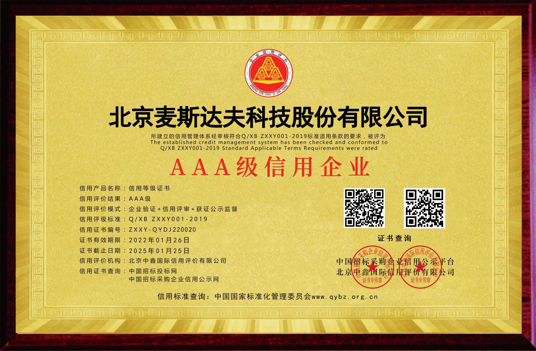近日,北京麥斯達(dá)夫科技股份有限公司積極構(gòu)建行業(yè)領(lǐng)先的信用體系再傳佳績(jī),被中鑫國信、中國招投標(biāo)(政府采購)企業(yè)信用評(píng)價(jià)與公示平臺(tái)授予“3A級(jí)企業(yè)信用等級(jí)”,并榮獲“3A級(jí)質(zhì)量服務(wù)信譽(yù)單位”、“3A級(jí)誠信經(jīng)營示范單位”、“3A級(jí)資信等級(jí)證書”、“3A級(jí)重服務(wù)守信用企業(yè)”及“3A級(jí)重質(zhì)量守信用企業(yè)”資質(zhì)。