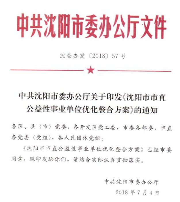據(jù)《沈陽(yáng)市市直公益性事業(yè)單位優(yōu)化整合方案》(沈委辦發(fā)〔2018〕57號(hào)),將組建“沈陽(yáng)市市場(chǎng)監(jiān)管事務(wù)服務(wù)與行政執(zhí)法中心(沈陽(yáng)市檢驗(yàn)檢測(cè)中心)”,市質(zhì)監(jiān)局所屬的沈陽(yáng)標(biāo)準(zhǔn)化研究院(沈陽(yáng)產(chǎn)品標(biāo)識(shí)質(zhì)量監(jiān)督檢驗(yàn)院,正處級(jí))、沈陽(yáng)特種設(shè)備檢測(cè)研究院(沈陽(yáng)市鍋爐壓力容器監(jiān)督檢驗(yàn)所,正處級(jí))、沈陽(yáng)市產(chǎn)品質(zhì)量監(jiān)督檢驗(yàn)院(沈陽(yáng)產(chǎn)品質(zhì)量監(jiān)督檢驗(yàn)研究院,正處級(jí))、沈陽(yáng)計(jì)量測(cè)試院(正處級(jí))等單位整合為沈陽(yáng)市市場(chǎng)監(jiān)管事務(wù)服務(wù)與行政執(zhí)法中心(沈陽(yáng)市檢驗(yàn)檢測(cè)中心),為擬組建的市市場(chǎng)監(jiān)管局所屬事業(yè)單位。