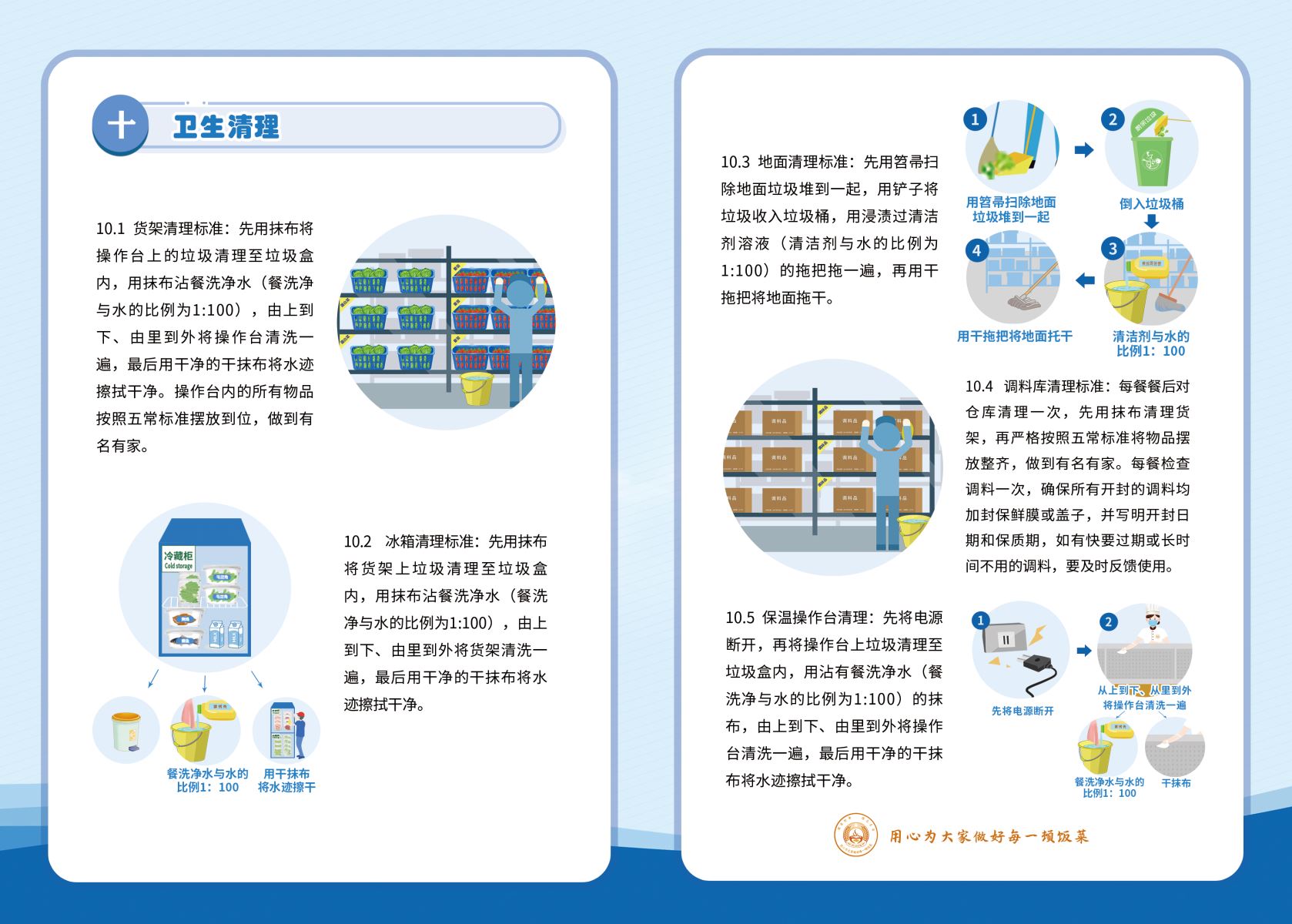 《餐飲服務操作規(guī)范》(圖解版)是在對原材料驗收、檢測、入庫、清洗、加工量化,菜品制作、留樣,出餐結算,餐具清洗消毒和衛(wèi)生清理等全流程崗位工作標準進行了多次現(xiàn)場演練、推敲驗證和反復優(yōu)化完善的基礎上制作的,圖片和漫畫的使用上也盡可能地貼近工作實際,是餐飲服務實際工作場景和工作步驟的真實寫照。通過標準漫畫這種可視化形式,固化和直觀展示餐飲服務標準流程,為開展餐飲服務標準培訓和實施提供了基本遵循。