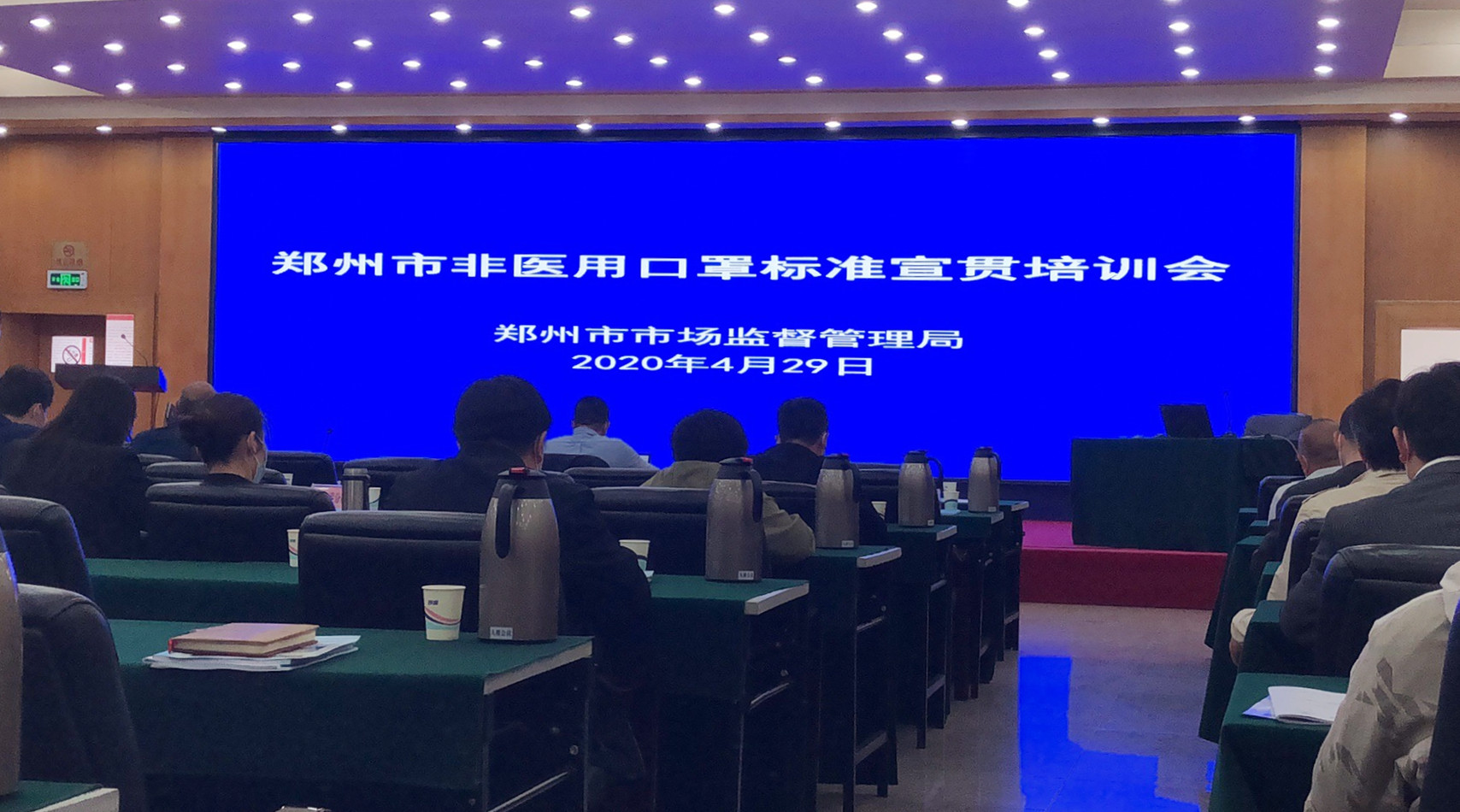 2020年4月29日,鄭州市非醫(yī)用口罩標(biāo)準(zhǔn)宣貫培訓(xùn)會在鄭州市市場監(jiān)督管理局九樓會議室召開。鄭州市市場監(jiān)督管理局副局長王擁軍,河南工業(yè)大學(xué)標(biāo)準(zhǔn)化與質(zhì)量檢測中心主任助理、全國糧油標(biāo)準(zhǔn)化技術(shù)委員會糧食儲藏及流通分技術(shù)委員會副秘書長陳衛(wèi)東,國家棉花及紡織服裝產(chǎn)品質(zhì)量監(jiān)督檢驗中心副主任憨文軒出席會議。鄭州市所屬各(市、區(qū))、開發(fā)區(qū)市場監(jiān)督管理局標(biāo)準(zhǔn)化科科長,口罩生產(chǎn)企業(yè)負(fù)責(zé)人等參加會議。會議由鄭州市市場監(jiān)督管理局標(biāo)準(zhǔn)化處處長劉彬彬主持。
